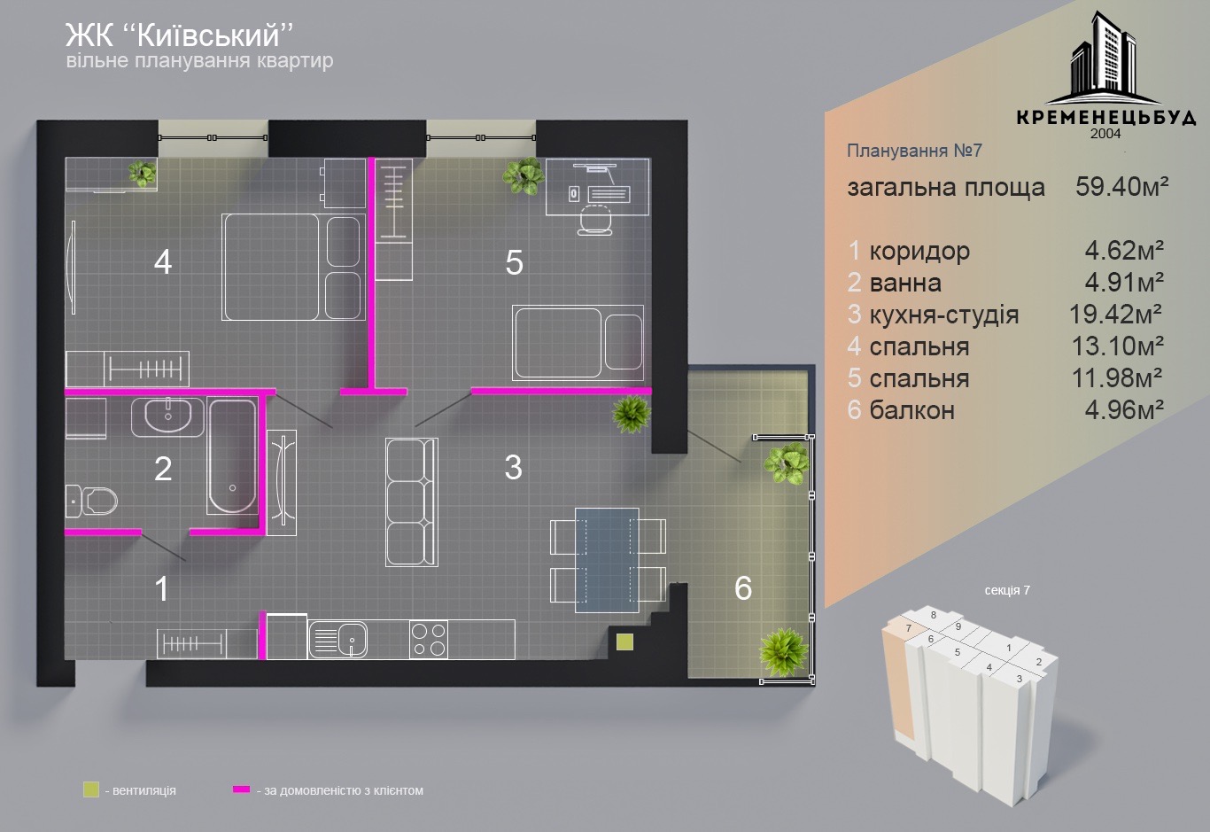 Кімнат:
