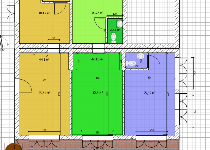 44 м2